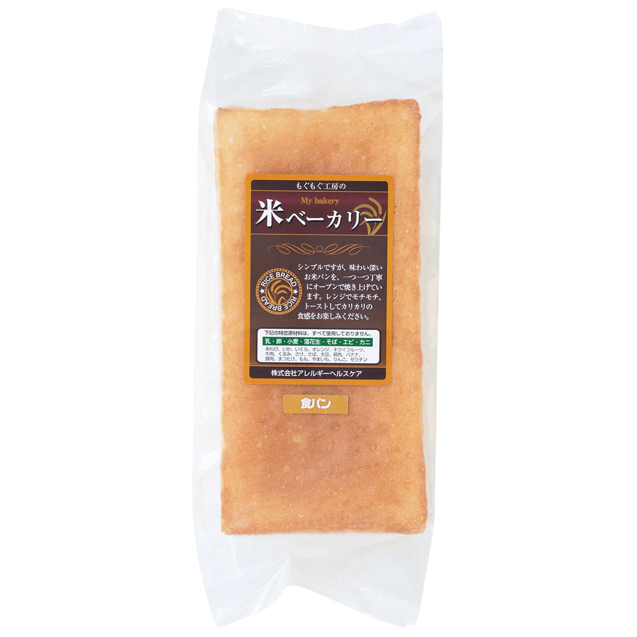 - 特定原材料アレルギー表示25品目を使用せずにつくりました。小麦、グルテンを使用しない、主原料米粉100%のパンです。