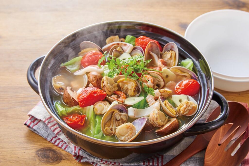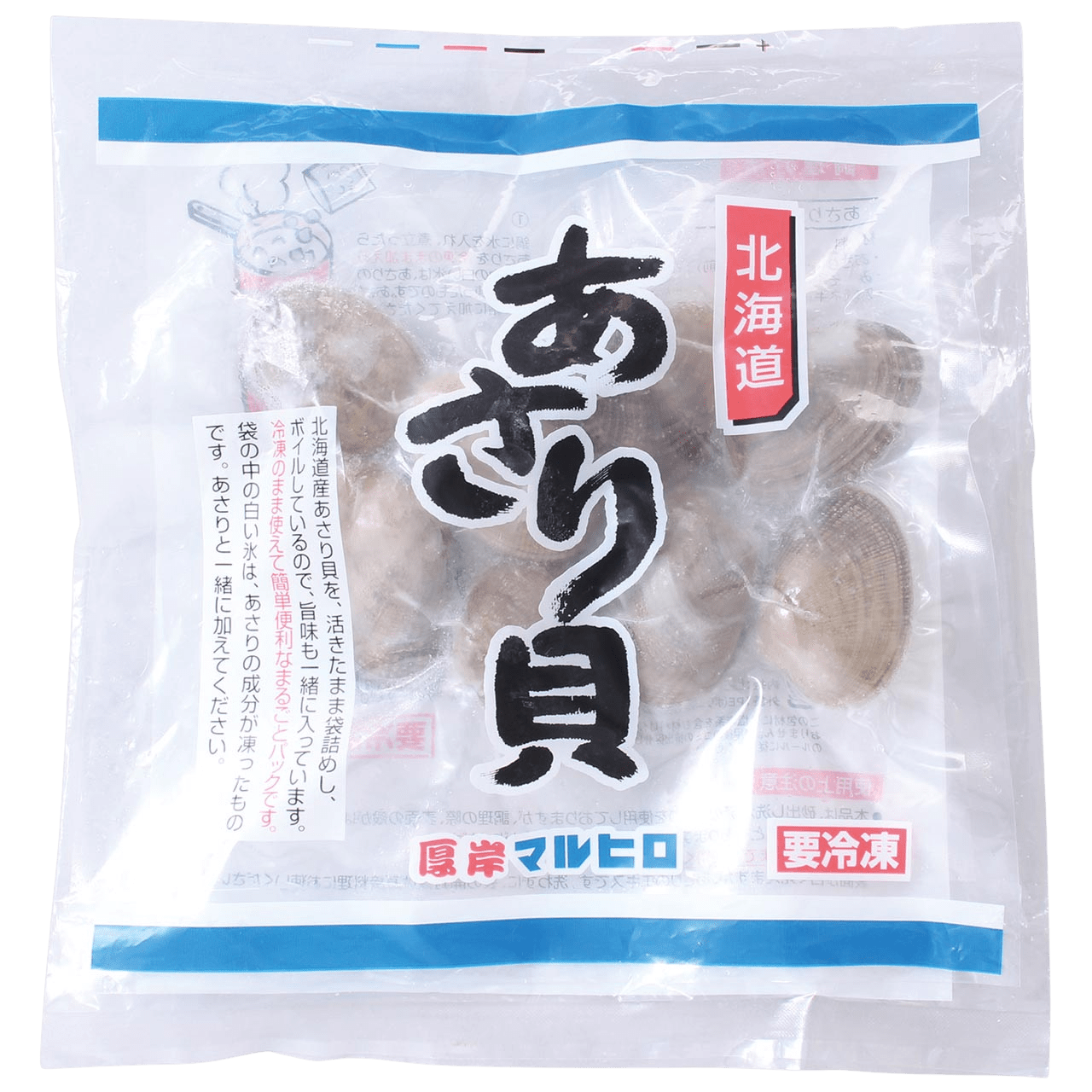 - 殻付きあさりを活きたまま袋詰めしてボイルしているので、あさりの旨みがぎゅっと詰まっています。