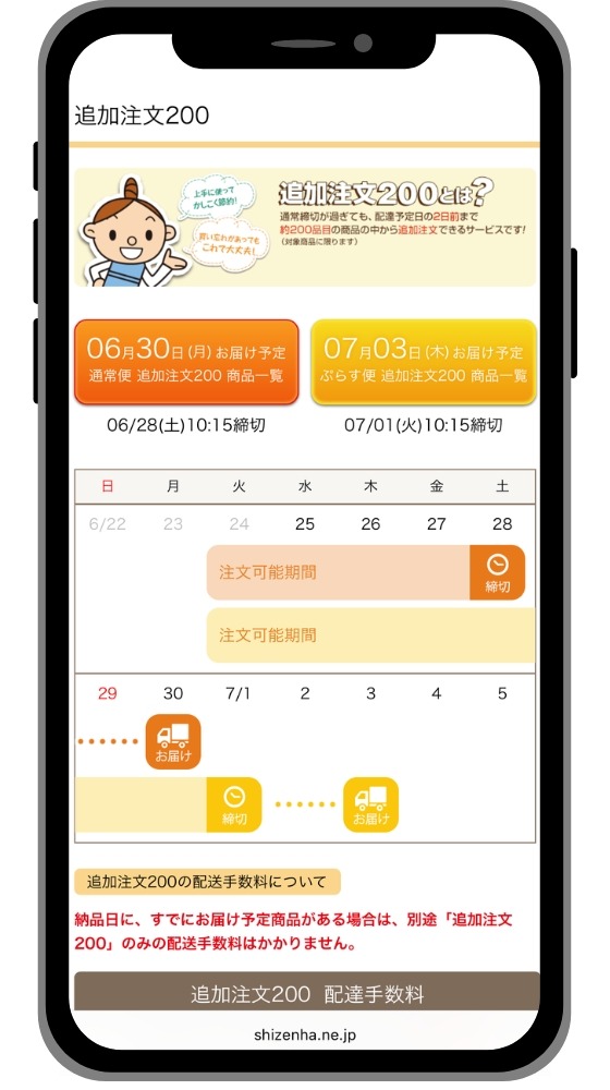 自然派オンラインでの注文は、注文用紙と違って、お届け日の翌日10:15まで翌週配送分の注文や変更が可能!